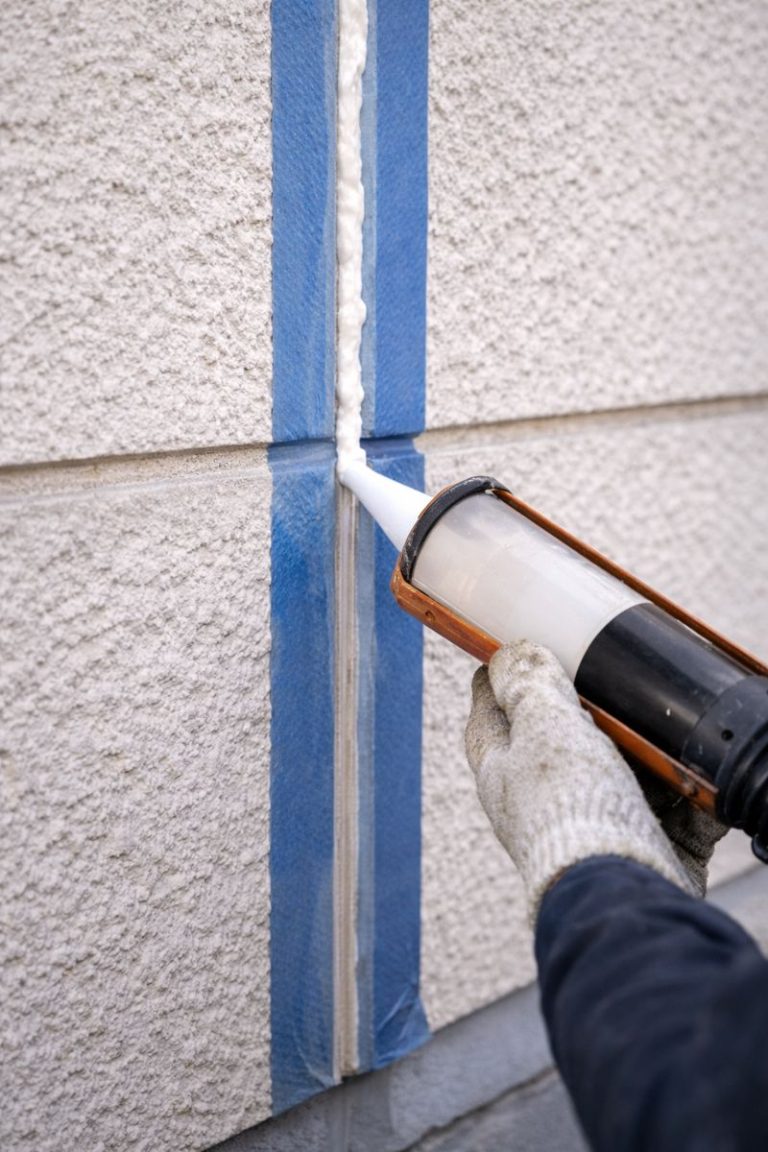 シーリング工事とは、建物の外壁やサッシ周り、目地部などの隙間(ジョイント)にシーリング材を充填して、防水性・気密性を確保する工事です。
