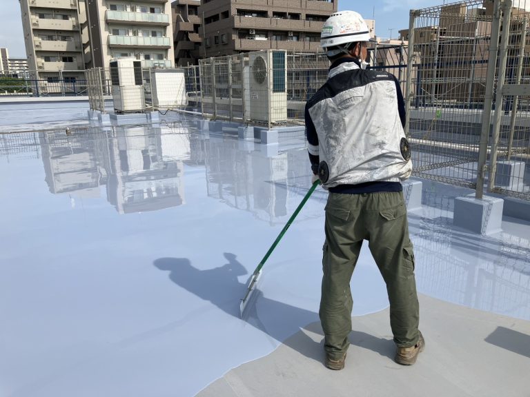 屋上・ベランダ・バルコニーなどの平場に対してウレタン塗膜で防水層を形成します。接合部や排水溝周りの細かい部分にも柔軟に追従し、ひび割れや水の侵入を防止。耐久性・耐候性に優れた工法で、補修や再施工が必要になる前にしっかり保護します。